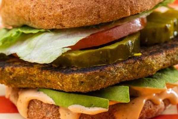 Veggie burger, lettuce, tomato, pickles, fresh avocado, and chipotle…