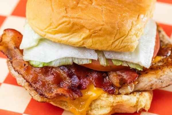Grilled or Crispy chicken, American cheese, Applewood smoked bacon, lettuce, tomato, and chipotle mayo.